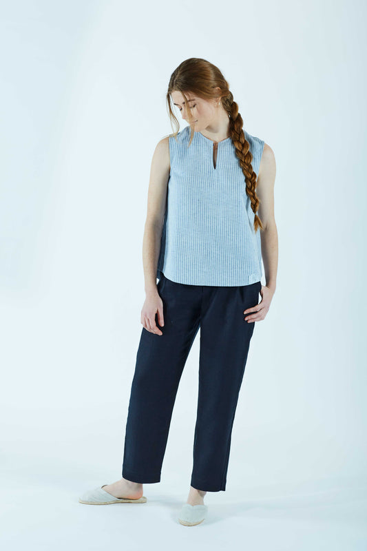 ärmellose Bluse CHARLOTTE tintenblau gestreift